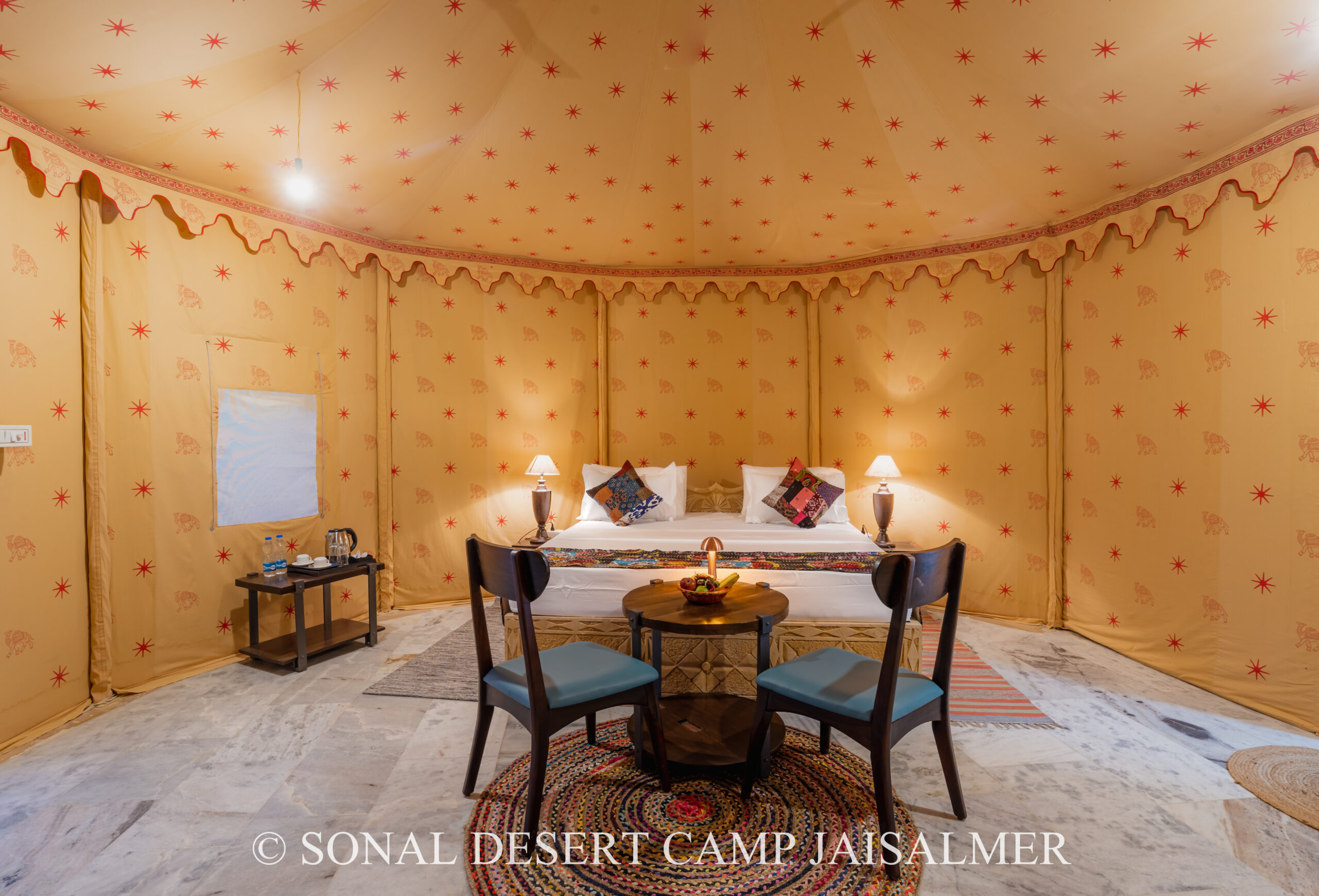 宿泊料金には、夕・朝食の他、サンセットらくだツアー、夕食時のラジャスタン民族音楽&舞踊鑑賞、税金も含まれています♪ バスルームの壁は、どの客室もテント生地ではなく、しっかりコンクリートで作られていますので、安心してお使いいただけます。スペースも広々、お湯も完備しています。